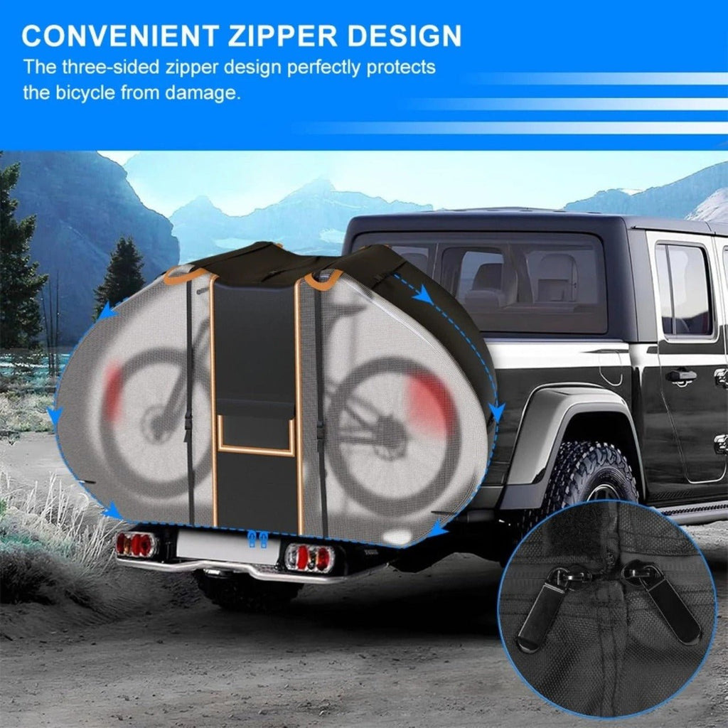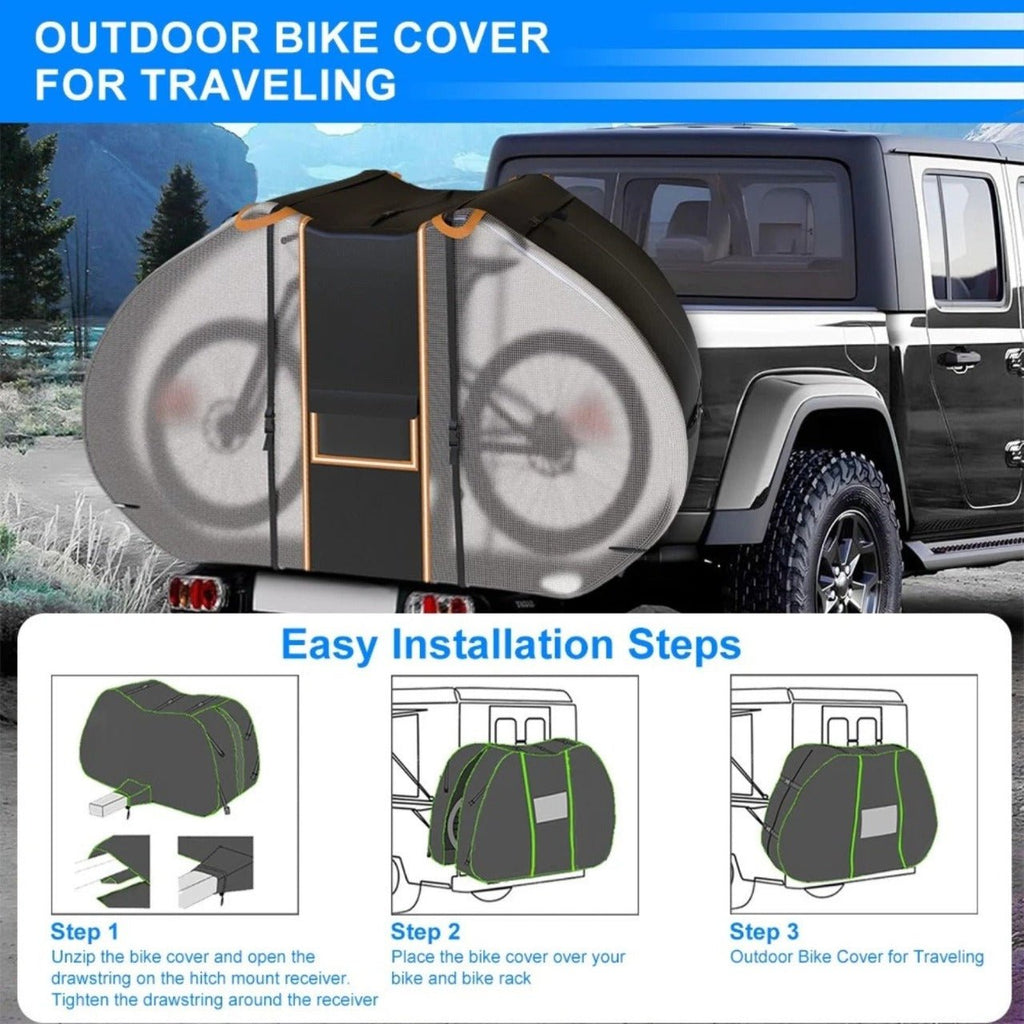 Protect your bike from harsh road conditions with the CycleGuard Bike Cover for Transport on Rack. Designed for cyclists who travel frequently, this premium cover shields your bike from rain, dust, bugs, road grime, and UV exposure while mounted on your vehicle.