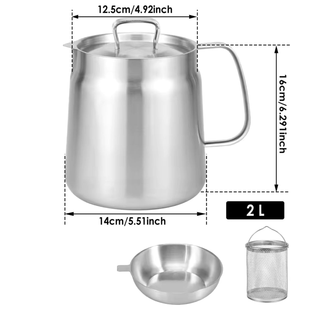 ✔️ Built-in Oil Strainer Lid: Integrated lid filters out crumbs and food particles, keeping your oil clean and ready for reuse.