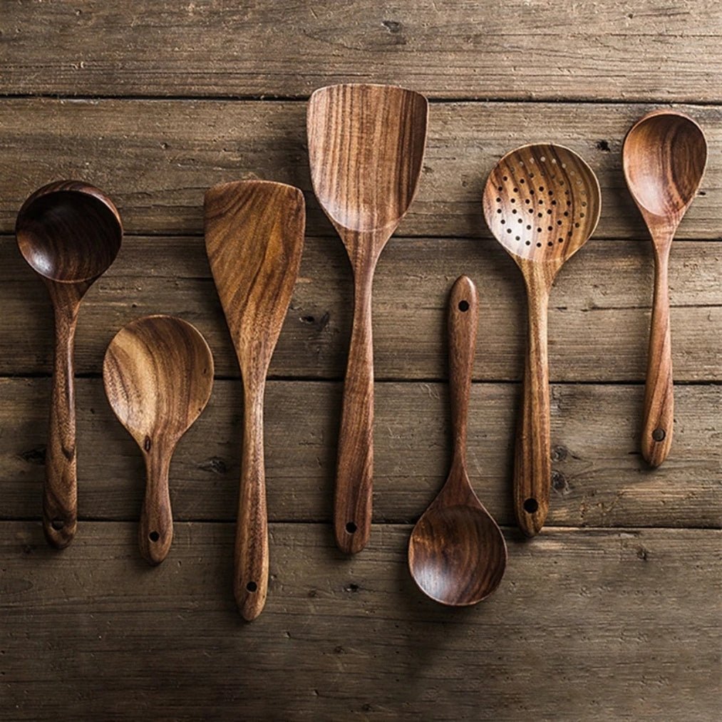 Infuse your kitchen with old-world charm and natural elegance with the RustikaWood 5-Piece Wooden Kitchen Utensil Set. Handcrafted from solid teak wood, each utensil features beautifully rich wood grains, a lightweight yet durable build, and a varnish-free, plant-oil finish that celebrates nature’s simplicity.
